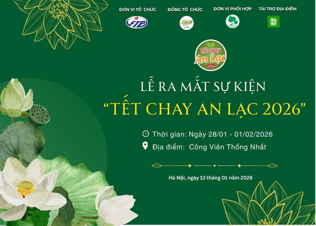 Buổi Lễ ra mắt sự kiện “Tết Chay An Lạc 2026” đã diễn ra vào ngày 12/01/2026 tại Nhà hàng Chay Mộc Miên, trong không khí trang trọng và ấm cúng. Sự kiện đánh dấu bước khởi đầu cho Hội chợ Sản phẩm Xanh – Thực phẩm Chay – Đặc sản Vùng miền, dự kiến tổ chức từ 28/01 đến 01/02/2026 tại Công viên Thống Nhất.